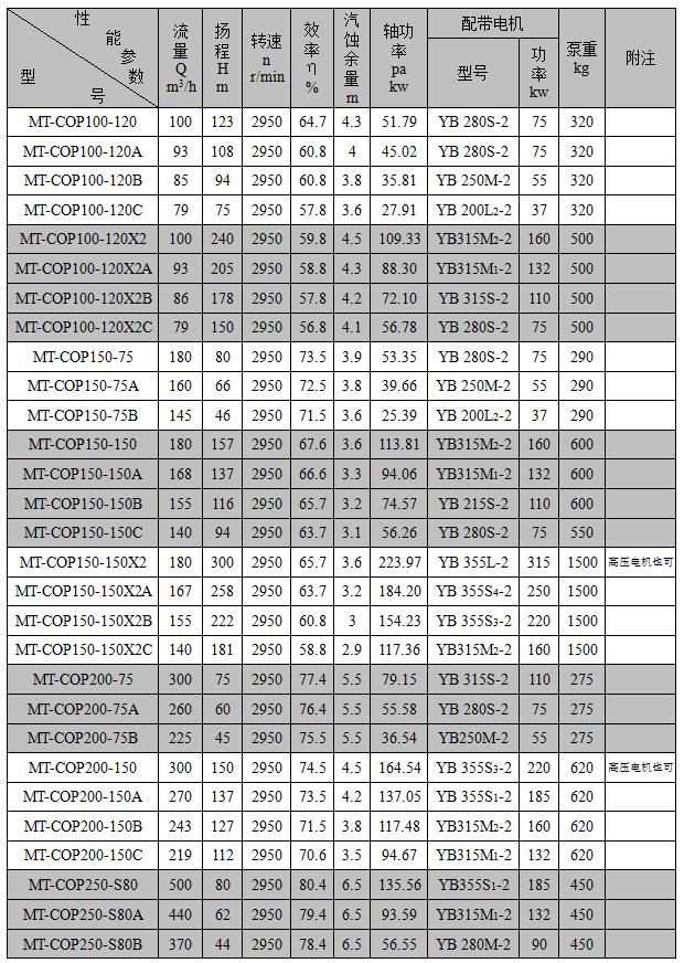 MT-COP系列磁力泵是在AY型離心油泵的基礎上加磁傳動裝置而成,其性能參數和安裝尺寸與同型號的AY泵相同